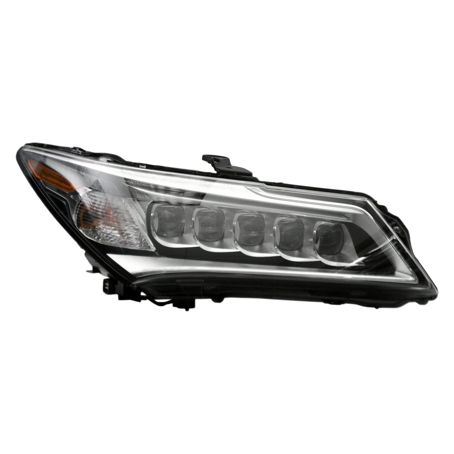 Passenger Side Replacement Headlight (AC2503125C) by Wheel Synergy. CAPA Certified. 1 Piece. Black/chrome housing, clear lens. With Projector. LED. Bulb: LED low beam (included), LED high beam (included), LED DRL, halogen turn signal (included). You need all your lights to be functional for safe driving, to see the road and be seen by other drivers. Don't drive with broken or missing lights and endanger yourself and your passengers because of the high cost of a replacement. A Wheel Synergy Exterior Light Assembly is a direct replacement for the original equipment (OE) part but costs much less. You get OE quality without the OE price.
