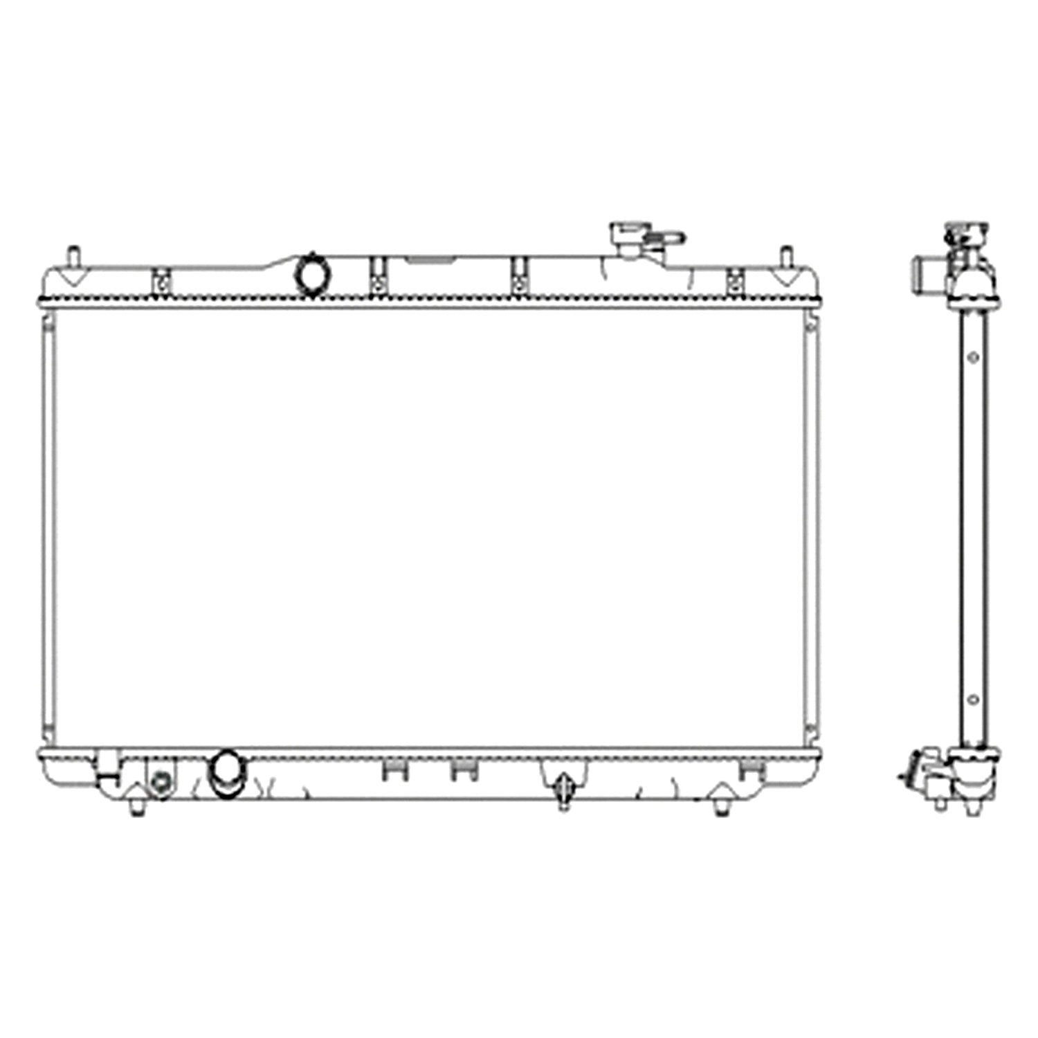 Engine Coolant Radiator by LKQ Corp. Construction: Plastic/Aluminum. The radiator contains a series of small tubes through which coolant flows from the engine. A network of fins surrounds the tubes. Airflow through the grille when the vehicle is at speed, or drawn though by the fan when the vehicle is idling or at low speed, flows through the radiator. Heat is transferred from the coolant to the fins and to the cooler ambient air. If testing proves that your radiator is leaking, clogged, or otherwise damaged, don't pay the high dealer price for a replacement, when you can get an OE quality radiator for much less from LKQ Corp.